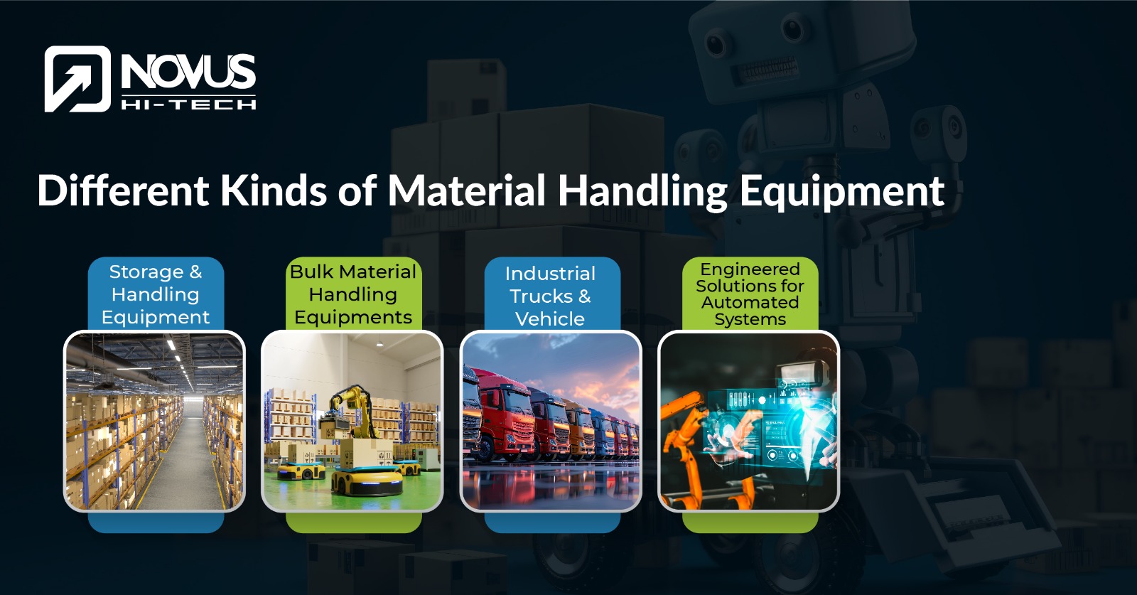 Yes, the four primary types of material handling equipment are Storage and Handling Equipment, Bulk Material Handling Equipment, Industrial Trucks and Vehicles, and Engineered Systems for Automated Solutions.
